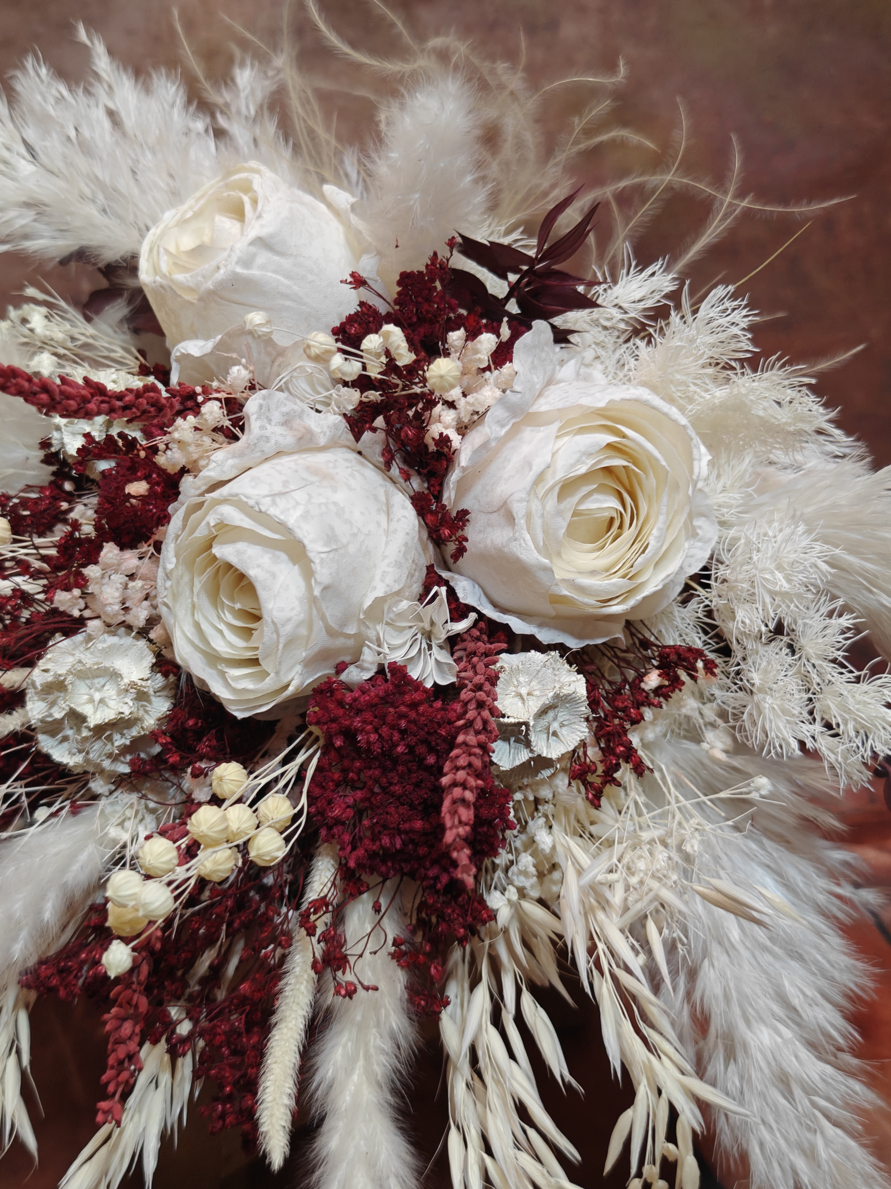 Ein besonderer Fokus liegt auf Brautsträußen aus Trockenblumen: langlebige Begleiter für Ihren großen Tag, die nicht verwelken und Sie auch lange nach der Hochzeit an diesen einzigartigen Moment erinnern. Ob schlicht, romantisch, modern oder verspielt – jeder Brautstrauß wird mit viel Liebe und mit großer Sorgfalt gefertigt.